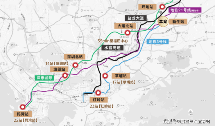 ≋3纵5横:紧邻盐龙大道,全程无红绿灯快速接驳水官、外环等高速,速抵罗湖、福田中心。