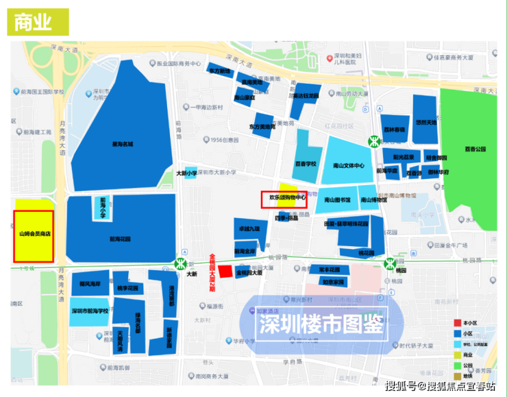 商业: 自带约5000㎡底商,步行400米可达天虹商场、欢乐颂FUN2,但缺乏高端消费场所。对比前海东岸花园的8万/㎡指导价,商业能级差距明显。