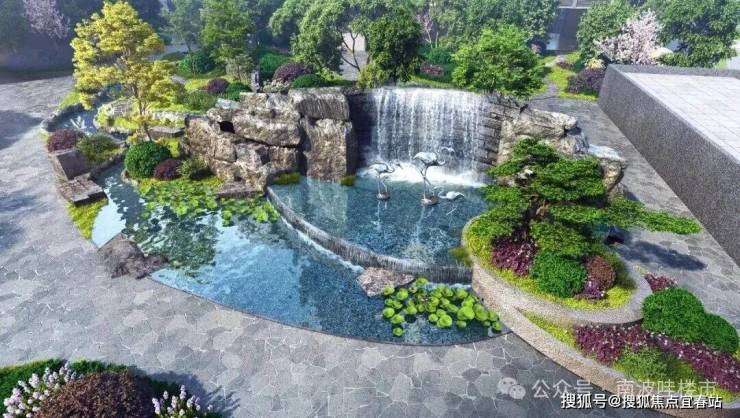 三重水景:提取凤凰山的形态纹理将自然山林元素与现代都市生活有机结合,在有限的面积之中,还原无限的自然山水之趣。