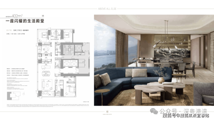 项目占地:9.23万平米建面27.7万平米,容积率仅3.0。规划有4栋纯大户型的商务公寓及35栋独栋董事公馆。并联袂全球最顶尖设计团队【美国雅布、英国凯莉·赫本、英国1508伦敦、意大利TOA、中国CCD。】共同打造的世界级豪宅作品。面积303-326-401-570-1000平米不等。