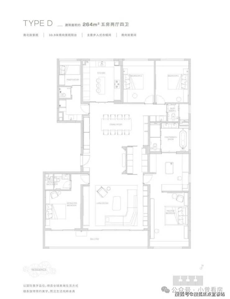 264为五房两厅四卫产品,更细腻的产品设计,超奢华四件套南向主卧,标准南向次主卧, 6.6米巨型方厅,纵向超长LDK一体化空间,专属家政保姆空间,超大容量收纳空间,令居住的尊贵从每处品质细节里流露而出,创造独一无二的奢享体验。