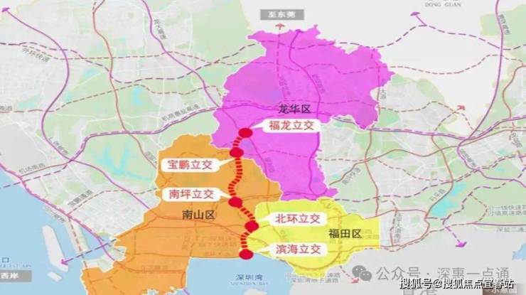 二期工程:衔接福龙路和在建侨城东路北延通道的互通立交,主线北起深华快速路,南接侨城东路,新建匝道6条,建成后快速通达南山。