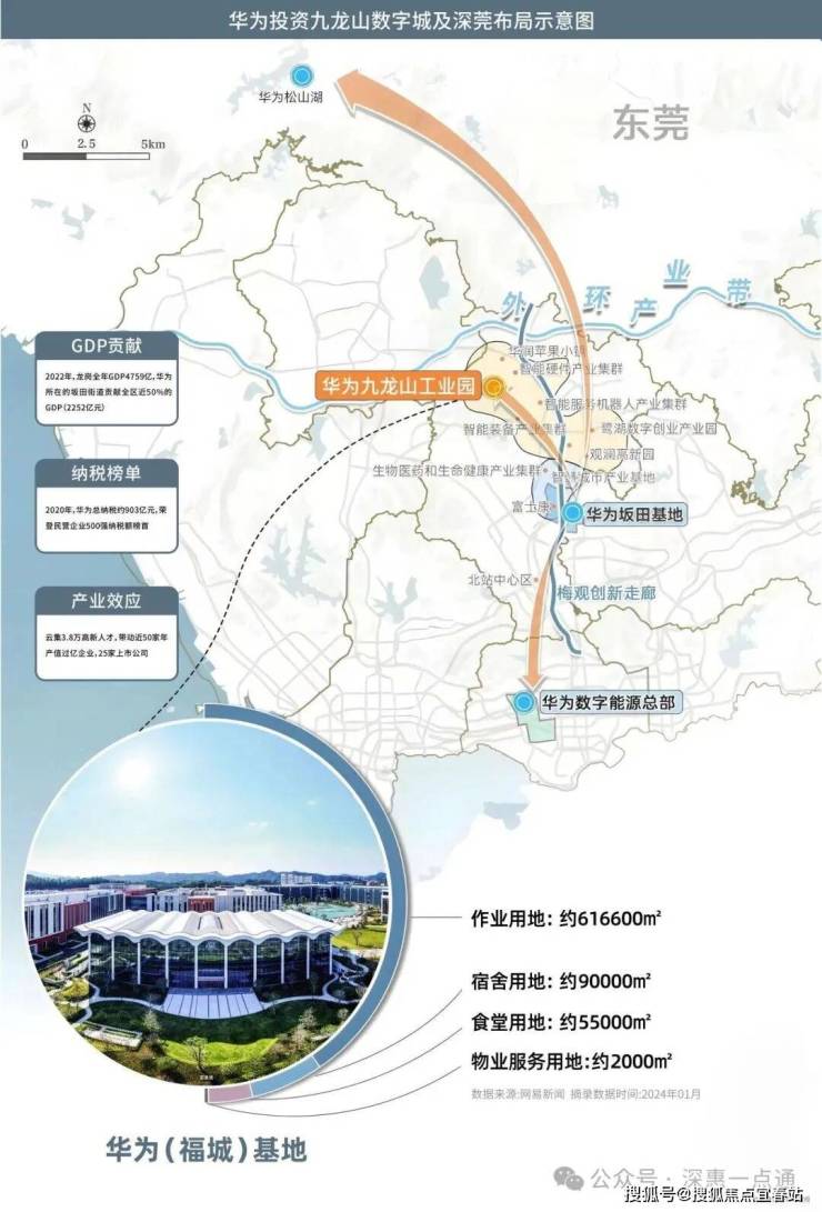 2022年龙岗全年GDP4759亿;华为所在的坂田街道占龙岗区面积的约7%,2022年贡献了全区近50%的GDP(2252亿元),成为深圳继粤海街道之后的“第二街道”;