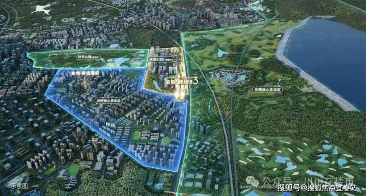 项目位于光明未来核心居住区、规划CBD、生态区“三芯”交汇处