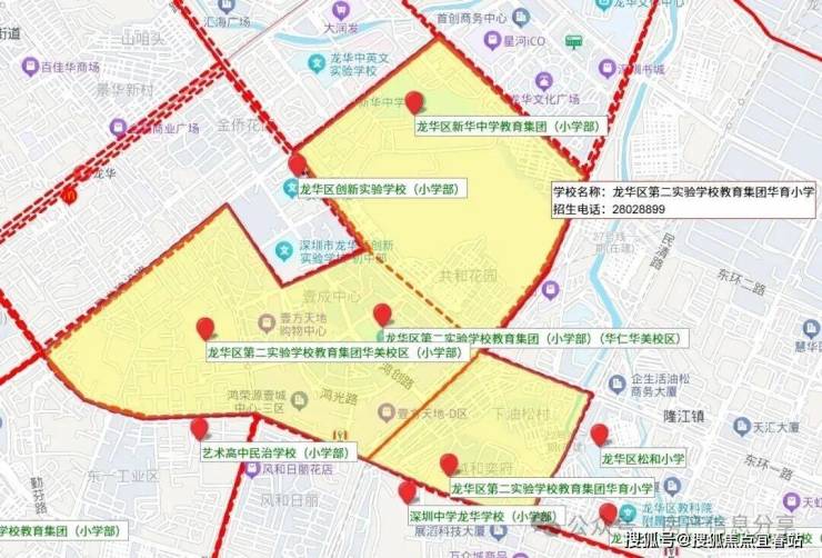 初中学区划分:深圳艺术高中民治学校初中部、龙腾学校北辰校区、龙华高级中学教育集团民治校区初中部、格致中学民治校区初中部、红山中学初中部,还有龙华实验学校初中部的大学区划分。