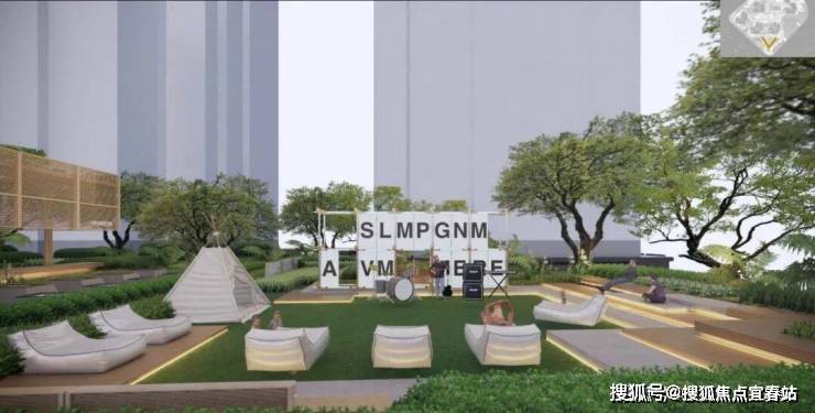 【抬高式檐上浮岛花园露台】:约1000㎡,位于商业街区顶层,业主私享花园露台,提供丰富空间活动区域,是邻里交流娱乐的理想场所。