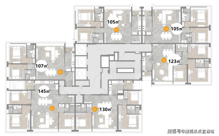 户型鉴赏(105㎡~145㎡/3梯6户)