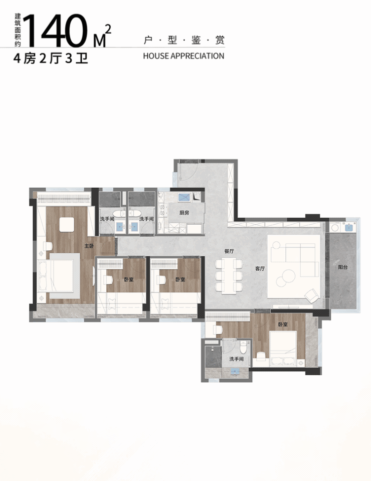 ➯建面约117㎡4房2厅2卫: