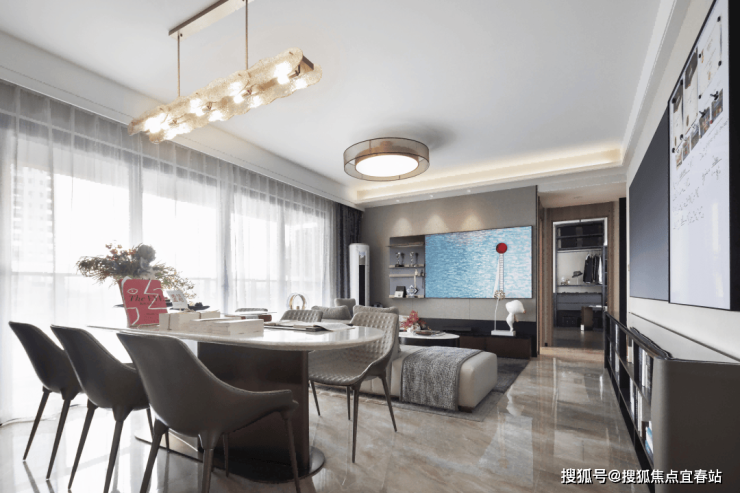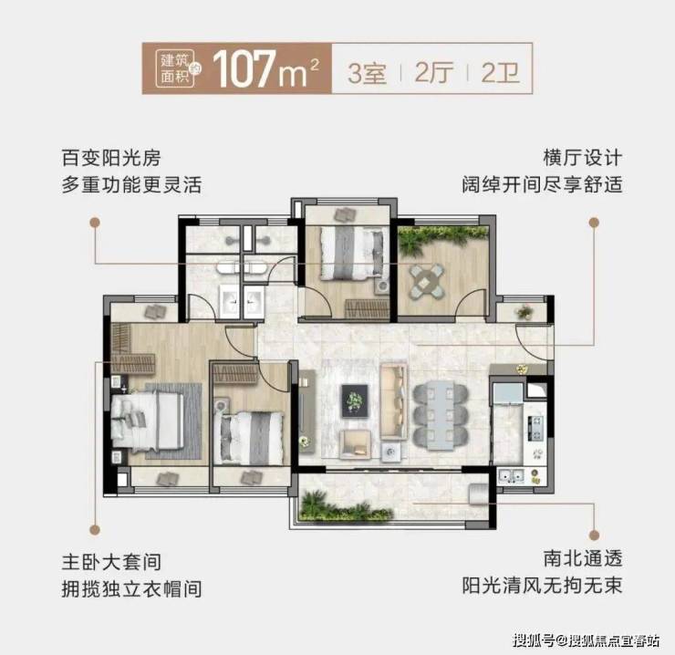 建面约107㎡3+1房户型,空间尺度的把握相当出色。