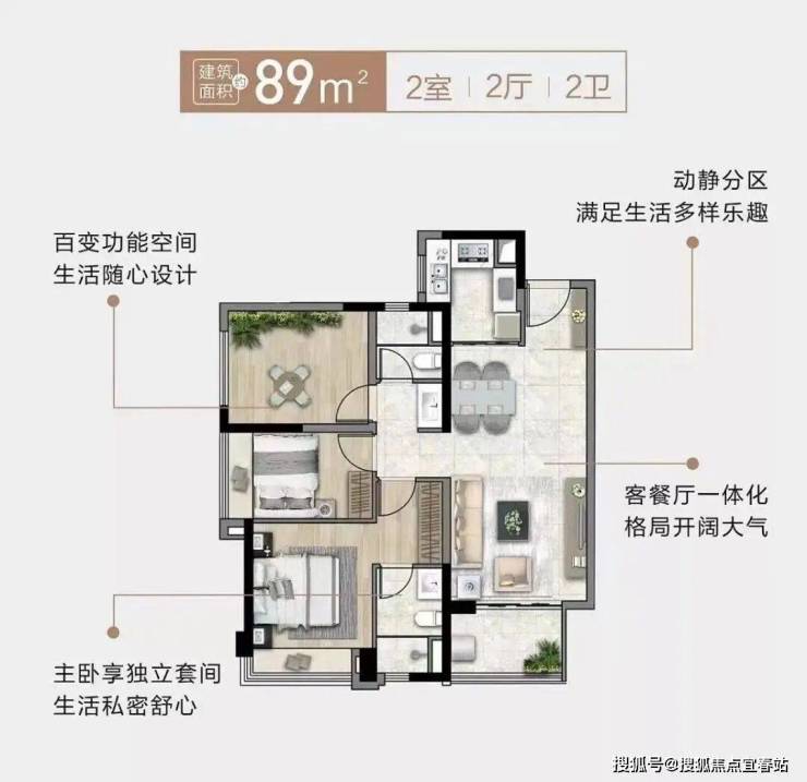 建面约89㎡2+1房,是东区总部在售最小三房户型。