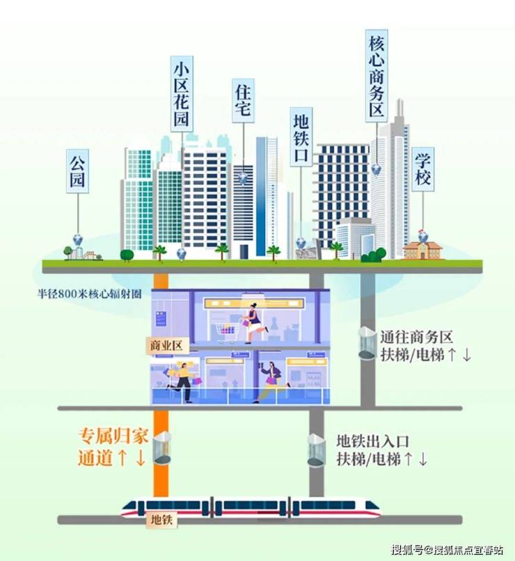 在TOD蓝图里,地铁上盖不仅仅是建筑,更是一个强大的“资源接口”。通过地下空间、地铁专属归家通道的巧妙设计,将商业、办公、居住、文化、教育等功能进行“芯片级”的整合,实现生活场景的高效链接。