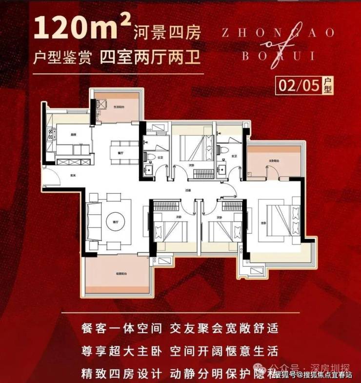 新品面积:120㎡四房两卫(南北)及89㎡三房一卫(河景)