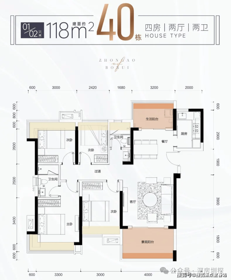 户型面积:40 / 41栋 104㎡(朝南) 118㎡(南北)