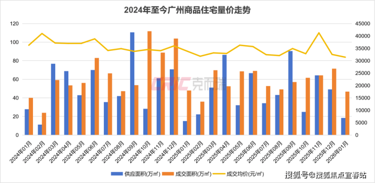 在“建好房+稳市场”双轮驱动下, 1月广州市场又出现了什么样的变化呢?监测数据现实,受春节临近影响,广州楼市迎来传统淡季,全市仅12盘有新增供应,供应面积18.35万㎡,环比减少63%,同比增加21%;网签量在上月冲刺年终业绩拔高后显著回落,全市成交46.82万㎡,环比下滑35%,同比基本持平。