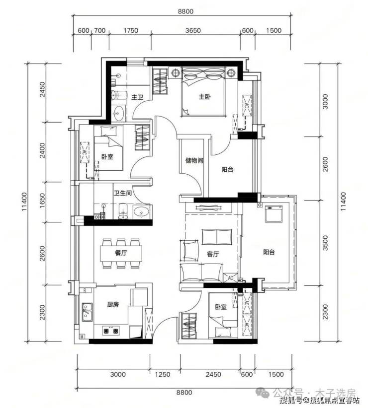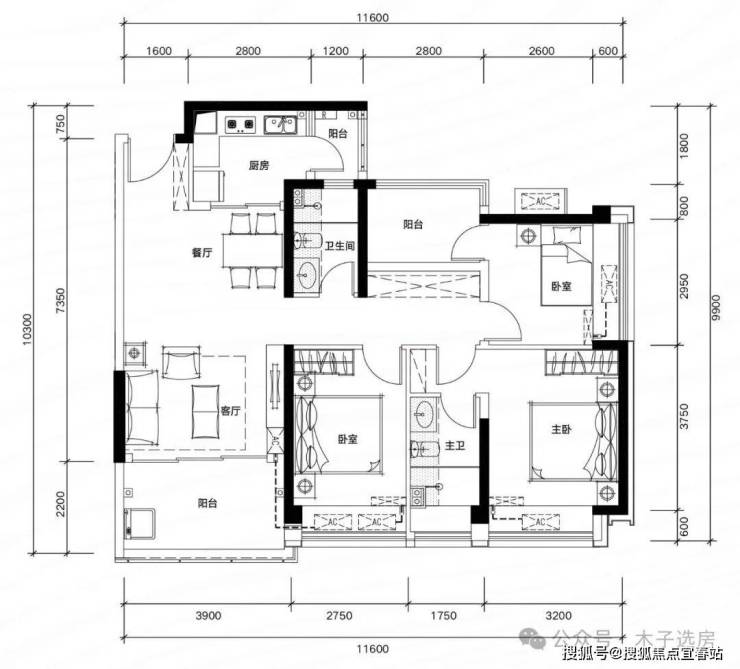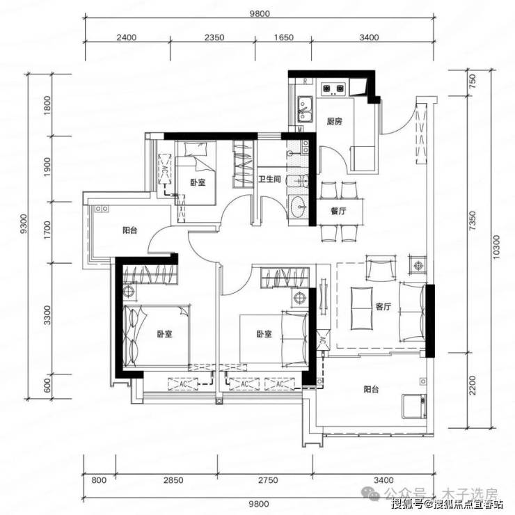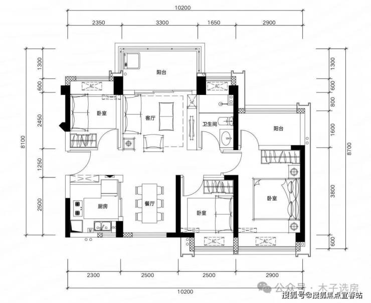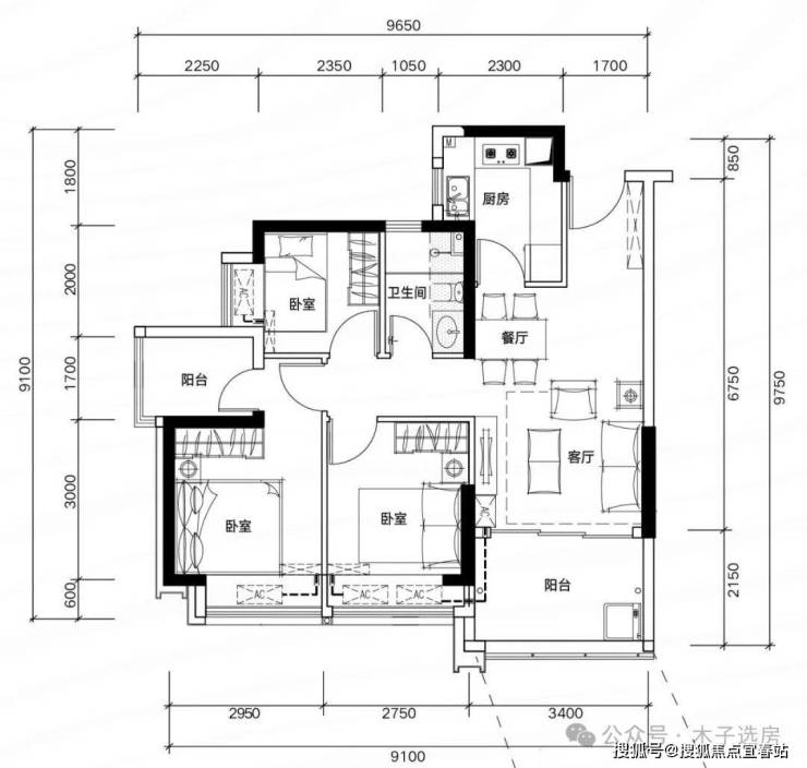 (每个房间都送一个阳台,81㎡做3+1房,注:阳台算一半的面积)