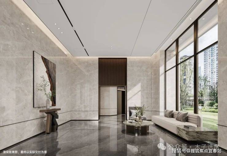 4、【高品质公区配置】首层、地库双层精装入户大堂,每个楼座均配备约33-68㎡首层入户大堂。