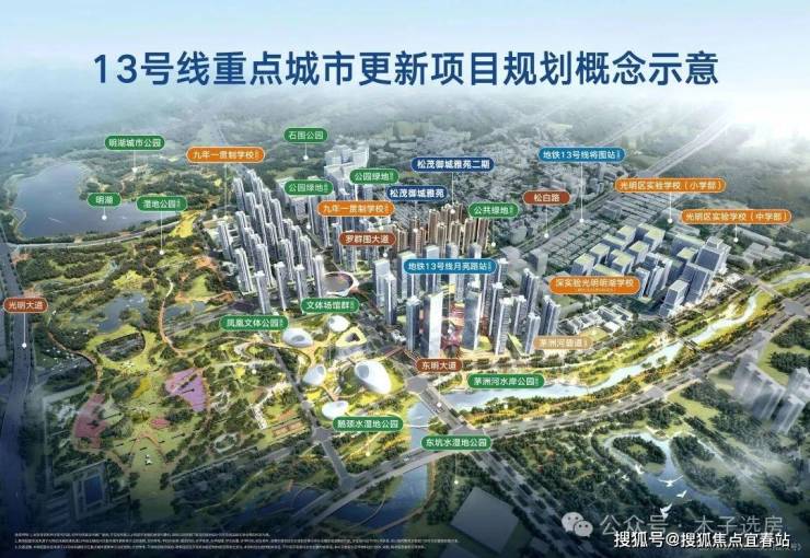 项目位于广深港科创走廊重要节点的“世界一流科学城”光明,归属凤凰城街道,邻建面约383万㎡13号线重点城市更新单元(在建),占位光明城市发展的“价值洼地”,同享磅礴产业规划红利。13号线重点更新项目(在建),总投资约420亿元,其体量约为光明城站TOD的25倍。将结合13号线月亮路站塑造、城市蓝绿公园网络提升、产城空间更新,无限链接生产、生活、生态要素,建设成光明区“三生融合示范区”。