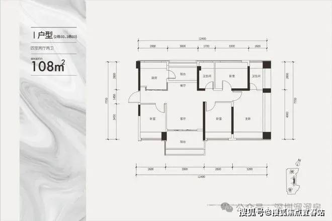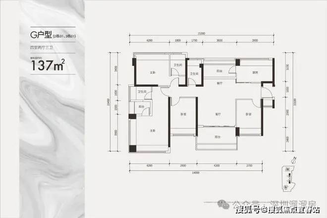 通透户型通风采光及景观视野极佳,卧室合理分布,居住舒适性及私密性较好。