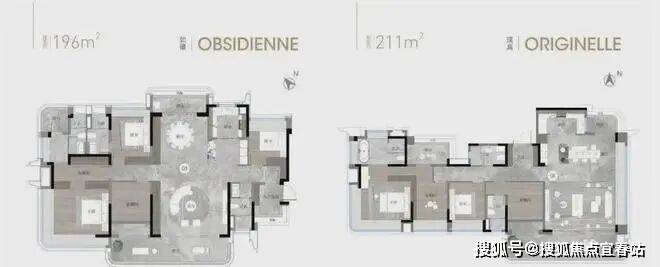 建面约196平方米和211平方米户型:南北对流,LDKB大方厅,双主套,主卧L型270度飘窗,空间体验极佳。