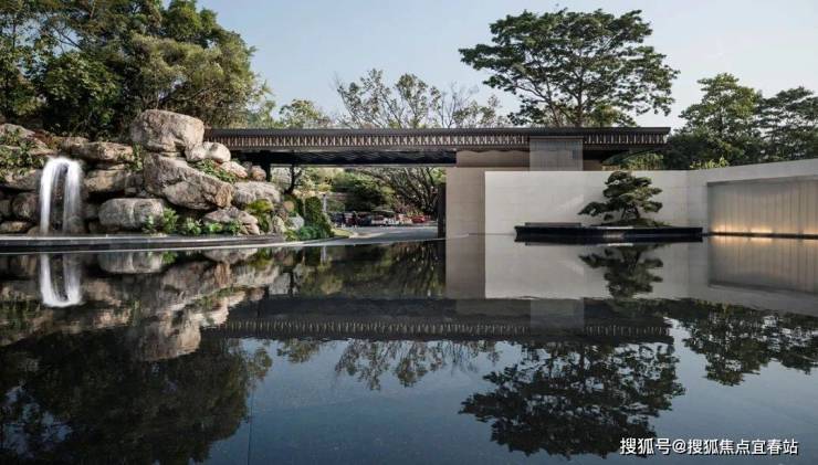 一进府门,门楼、水景、迎客松,庄严而不失意境。从远处望去,具有强烈的辨识度,给人一种“到家了”的心里暗示。