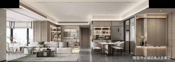 “四开间朝南”,拥有近13米巨幕采光面,将 室外的园林景观和阳光毫无保留地引入室内。