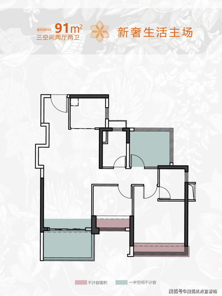 ● 建面 约91㎡三空间两厅两卫:
