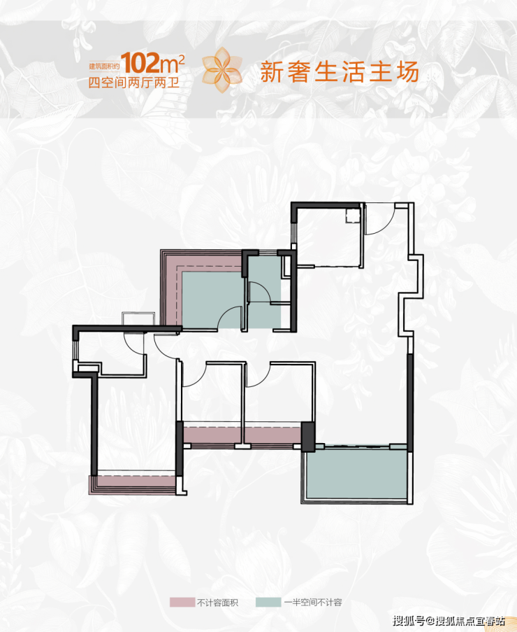 ● 建面 约102㎡竖厅四空间两厅两卫: