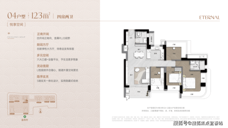 首推一期1栋5单元(45层),91-173㎡3-4房,共232套,以122-175平米4房为主,占比83%,还有两套257平顶复产品。173/257平大户型双电梯独立电梯厅入户,南区91-125平户型3梯4户。户型还奢配独创弹性方厅、环幕尊奢主卧、极致三面采光、多飘窗+设备平台等7大顶配豪宅体系。