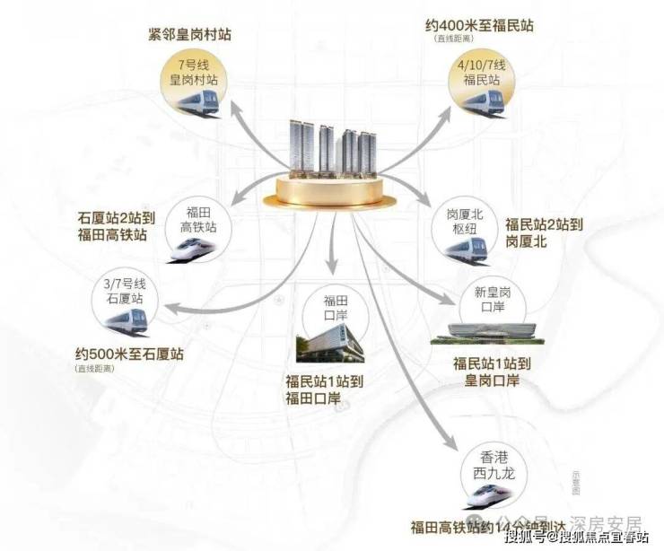 交通配套:卓越缦悦交通配套堪称"四地铁+双口岸"立体通勤典范,紧邻地铁7号线皇岗村站(E/D/C1/C2口直达),步行3分钟即可到达;距4/10号线福民站约300米,距3号线石厦站约500米,形成四线环绕的便捷网络。通过7号线可快速直达车公庙、华强北等核心商圈,换乘1号线、2号线、3号线、4号线等线路,轻松通达深圳各区。项目2站地铁可达新皇岗口岸,3站至福田站(广深港高铁枢纽),15分钟直达香港,实现深港同城圈。