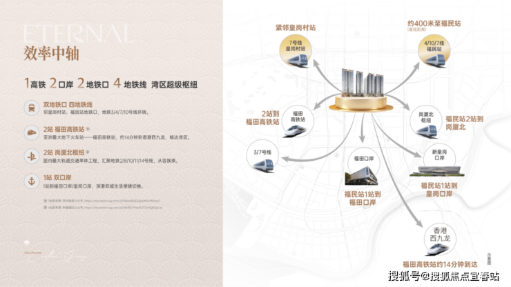 深圳中轴,作为少有的“行政+金融+科技”三核中轴,汇聚着深圳乃至大湾区最核心的资源与力量,是全国“含金量领衔”土地之一。聚集了约295家持牌金融机构,超156家世界500强企业,超150座过亿纳税楼宇等贡献了全市超1/5GDP,是当之无愧的经济命脉。同时,其北揽福田CBD金融中心,南接河套科创浪潮,与新皇岗口岸枢纽(在建中)是驱动深港融合、赋能国家科创的重要战略轴脉。