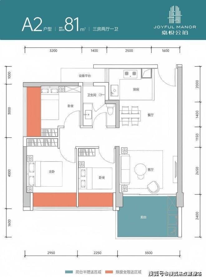 竖厅格局,客厅3.5米开间,三开间朝南,3个卧室分别做到了主卧11.29㎡/次卧8.97㎡/次卧7.76㎡(含飘窗),客厅出8.4㎡的大阳台,得房率约86-90%(包含赠送),正南朝向。
