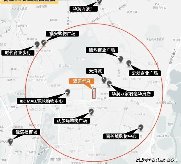 除以上商业外,据不完全统计,项目1.5公里范围内覆盖有5个大型集中式购物中心-粤海城约12万㎡天河城商业,IBC MALL(环球购物中心)、沃尔玛购物广场、喜荟城购物中心、福安购物广场;3个传统购物街区-宏发商业广场、腾均商业广场、时代商业步行街等。