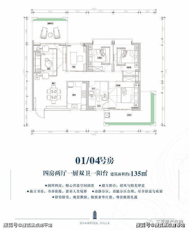 在售栋数1#、2#、3#、5#硬装交付。主力户型建筑面积:A户型108平三房、B户型135平四房;正南正北,户户双阳台,通风采光好。