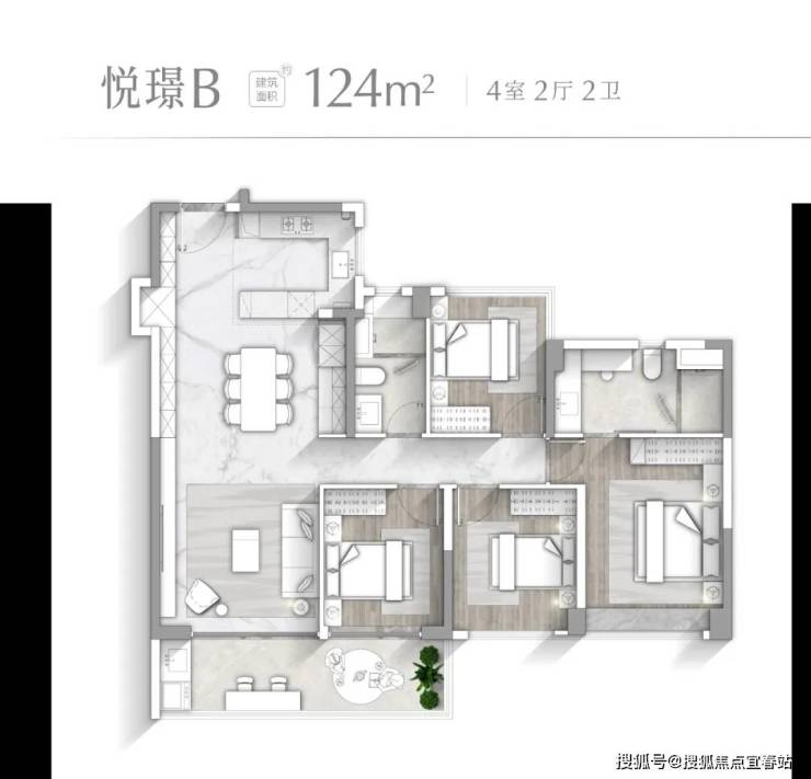 【悦璟B户型 建面约124㎡】