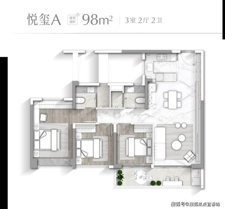 【悦玺A户型 建面约98㎡】