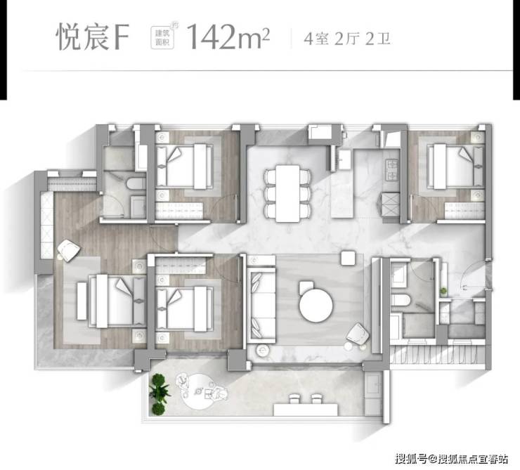 【悦宸F户型 建面约142㎡】