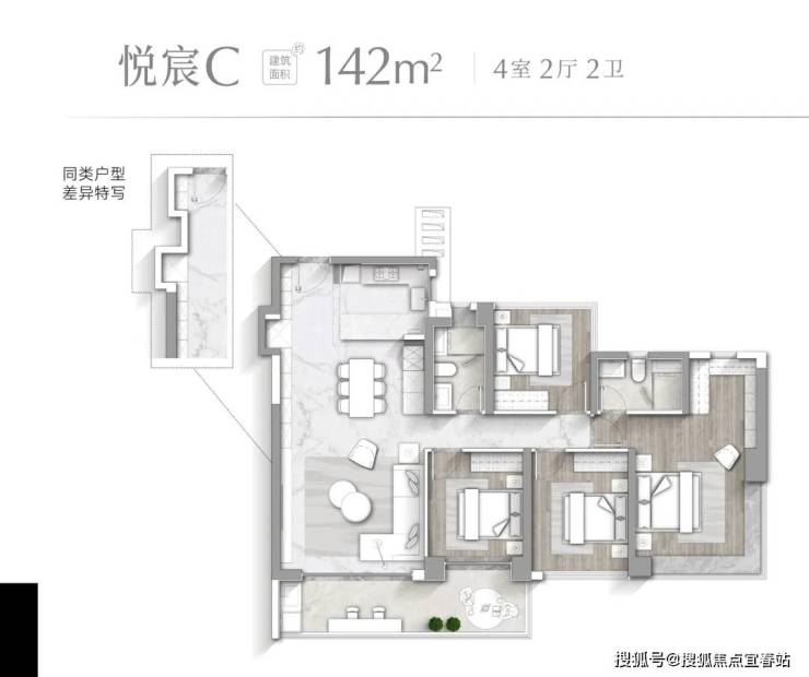 【悦宸C户型 建面约142㎡】