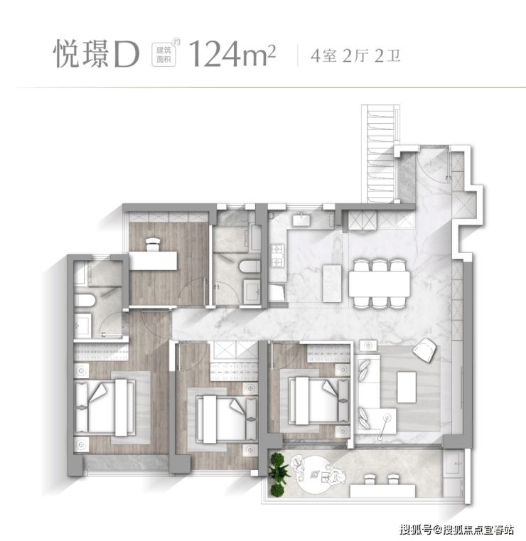 【悦璟D户型 建面约124㎡】
