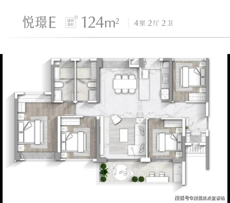 【悦璟E户型 建面约124㎡】