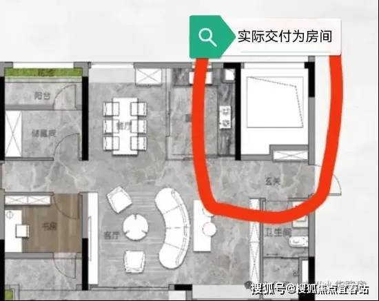 重点说一下125平这个户型,右上角空白处实际交付也是一个房间