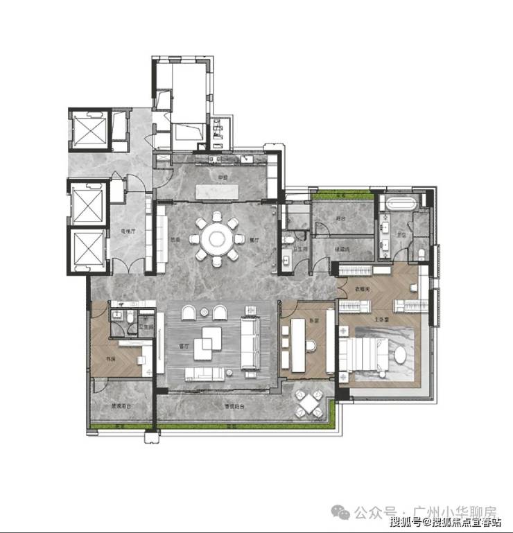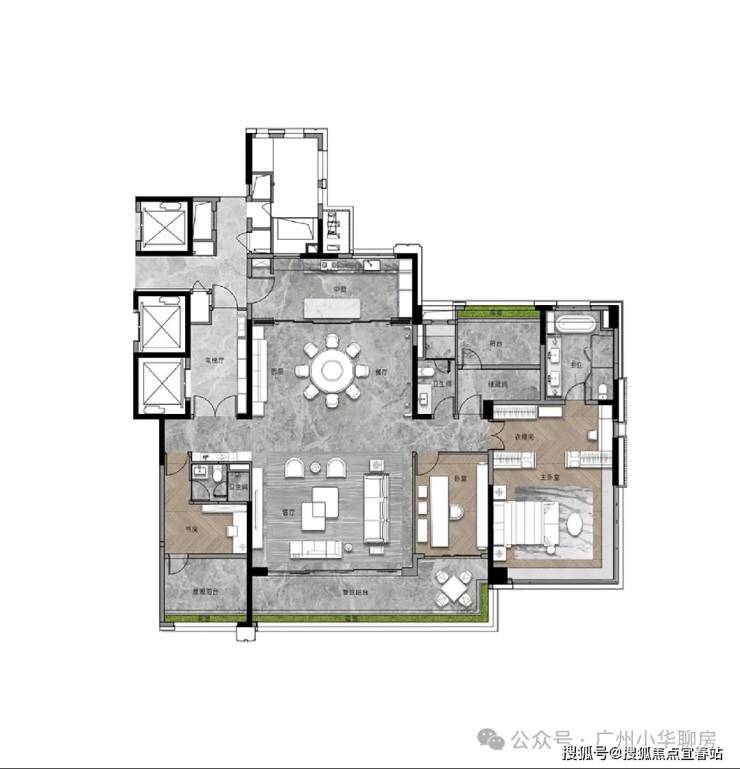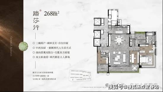 我们再来看看此次加推的268平的大面积户型,作为项目的旗舰,暗藏着哪些巧妙的设计?