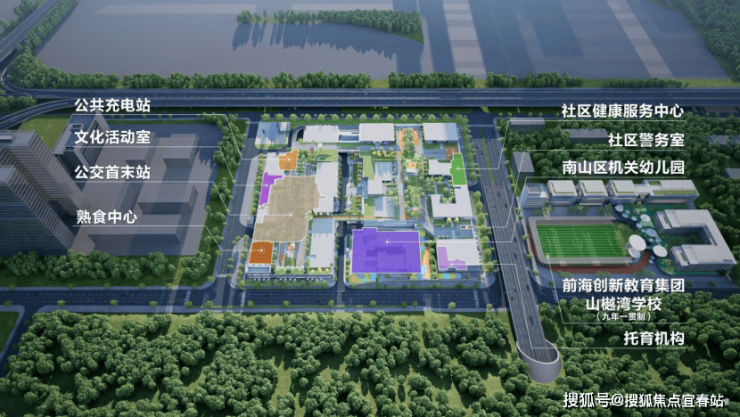小区配套南山机关幼儿园及前海创新教育集团九年一贯制山樾湾学校(工程暂定名:兴海学校,目前建设中)。