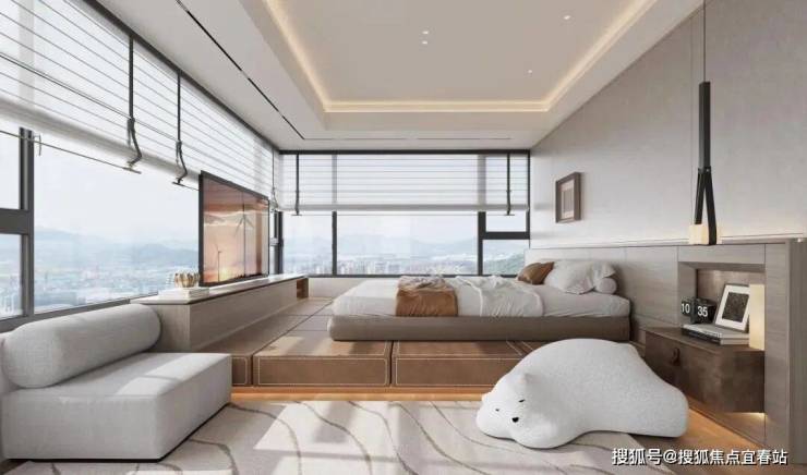 全景舱设计酒店式主卧套,270°景观飘窗,步入式衣帽间,奢享雅致生活;