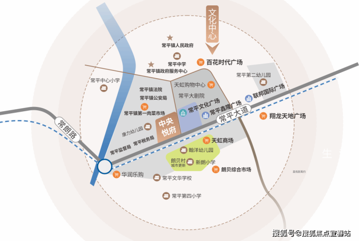 行政配套:常平大剧院、常平图书馆、常平文化广场、常平公安局、常平法庭、常平体育馆、常平政务服务中心、东莞市税务局;