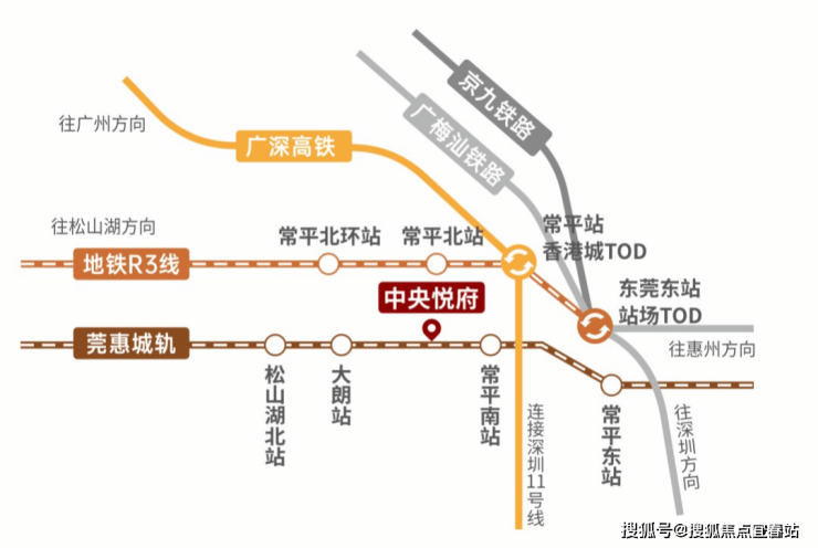 “东常平、西虎门”常平作为东莞东部最早繁荣的镇区,轨道交通【城轨+地铁+高速+高铁】四维叠加。