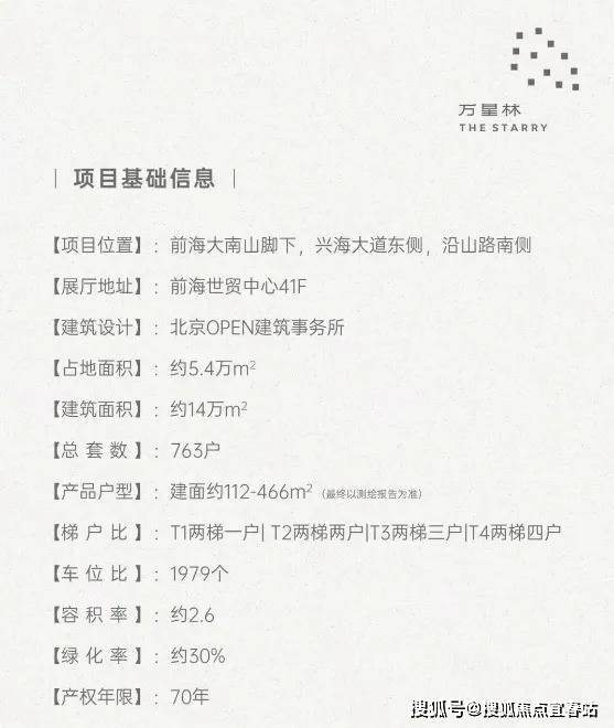 户型方面,因深圳“70/90”政策退出,项目由原955户调整为763户,主力户型建面约112-466㎡,定位改善型产品,涵盖两梯一户至两梯四户,超豪华梯户比。