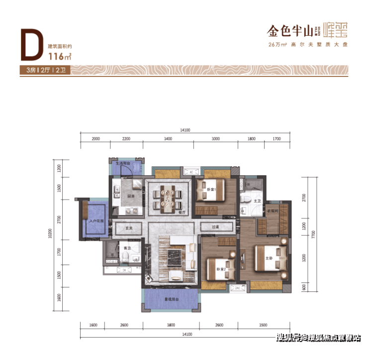 【稀缺台地大洋房】项目依山而建,打造2梯4户,96-141平3房至4房。