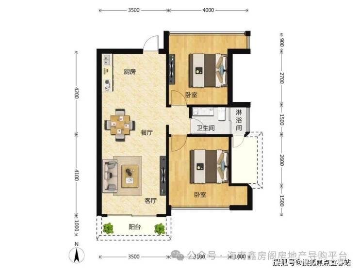 C户型两房一厅一卫:59㎡送21㎡ 实得80㎡。