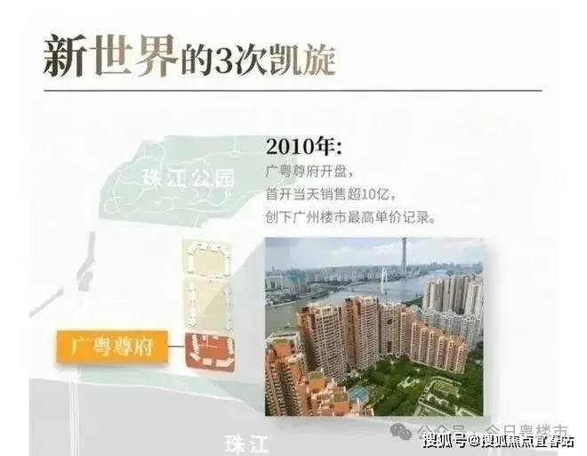2010年,凯旋新世界广粤尊府首开,当天销售超10亿,一举创下广州楼市的最高单价记录。也正是这一年,广州楼价达到历史巅峰,涨幅为38%。