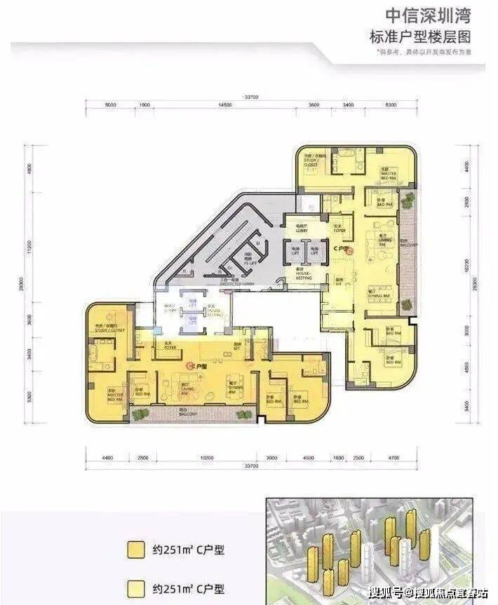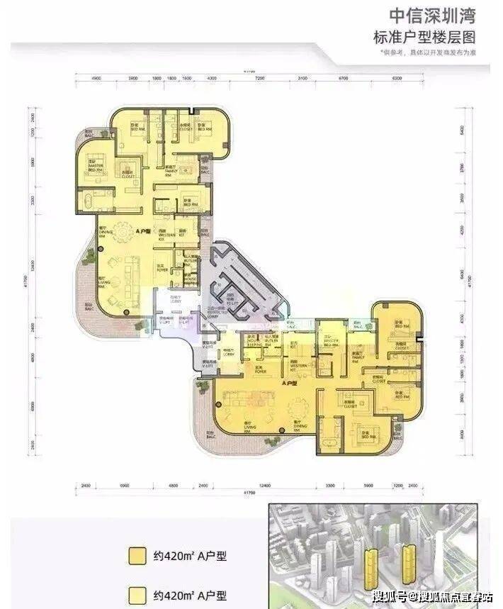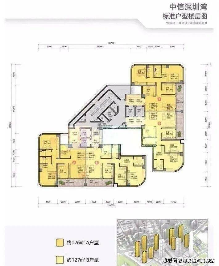 中信元湾府(中信城开深圳湾项目)的新的户型图,建面约195平、285平、350平、495平,层高3.6米,L型大阳台进深2.8米!